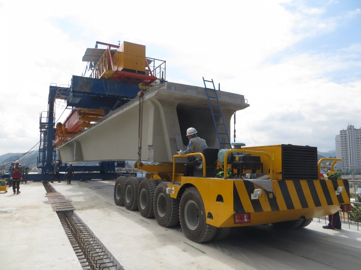 洛陽(yáng)龍派機(jī)械有限公司所生產(chǎn)的運(yùn)梁車是橋梁建設(shè)的配套設(shè)備,主要用于將預(yù)制梁從梁場(chǎng)運(yùn)送到架橋現(xiàn)場(chǎng),并配合架橋機(jī)進(jìn)行架橋作業(yè),也可用于架橋機(jī)的托運(yùn)。該系列運(yùn)梁車采用液壓驅(qū)動(dòng),操作方便,性能穩(wěn)定,安全可靠。